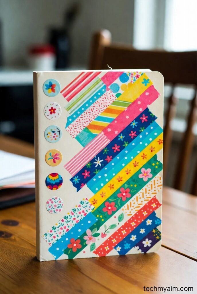 Add strips of washi tape across the cover in patterns or shapes. Add stickers if you like.