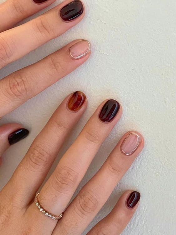 - Mix and Match: Combine different brown shades, patterns, and textures on each nail for a fun and unique manicure.