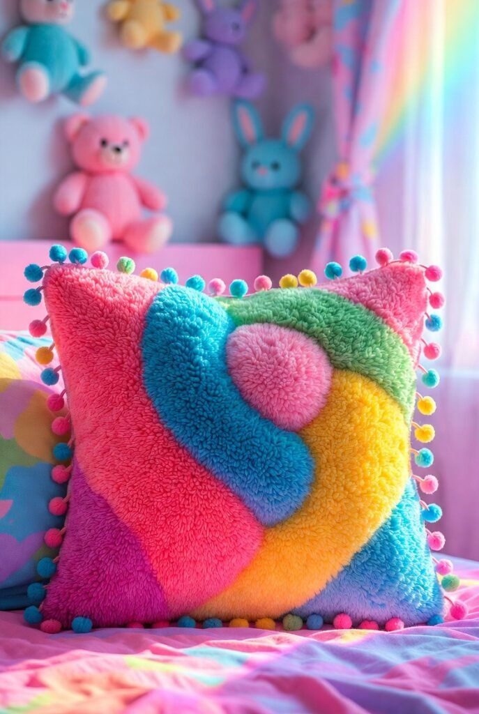 Pom-pom pillows add a playful and cheerful vibe to any room, especially kids’ spaces.