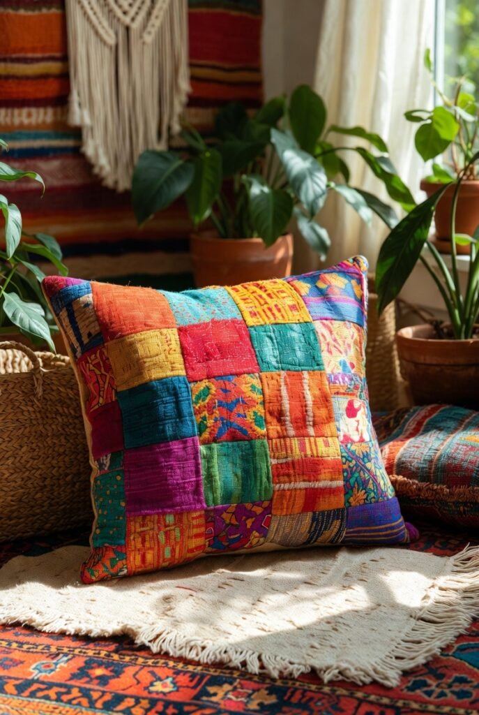 4. Patchwork Pillow (Creative and Eco-Friendly)