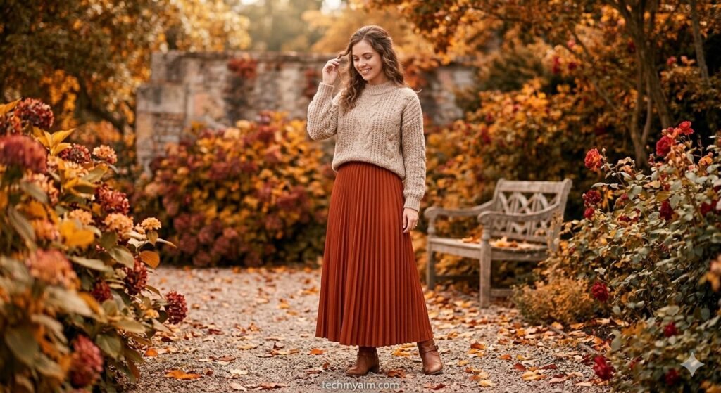 2. Long Skirt with Knit Sweater