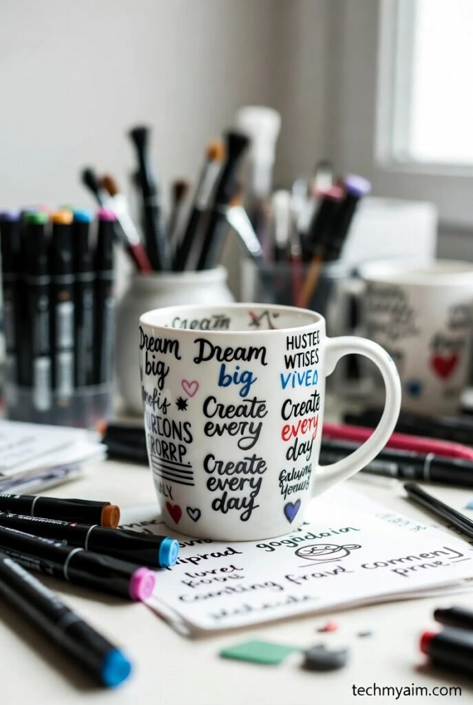 Turn a simple mug into a personalized gift by decorating it with ceramic markers. You can write a favorite quote, draw a small illustration, or add the person’s name.