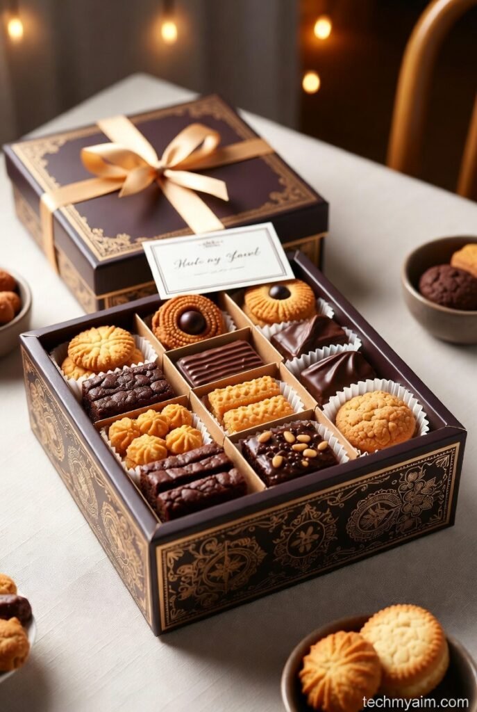 Materials needed: Homemade treats, gift box, ribbon.