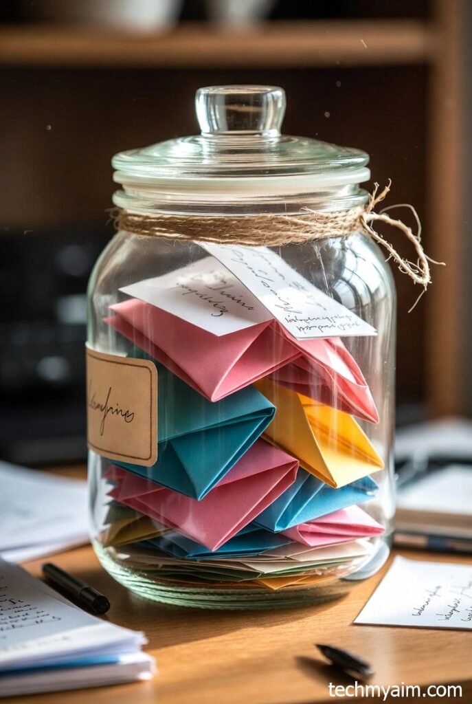 A memory jar filled with handwritten notes is a thoughtful and emotional gift. Write short messages, memories, compliments, or motivational quotes on small pieces of paper. Fold them and place them inside a decorated jar.