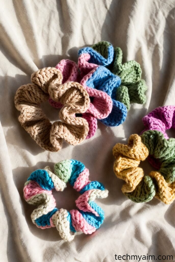 Scrunchies are trendy, fast, and use small yarn amounts.