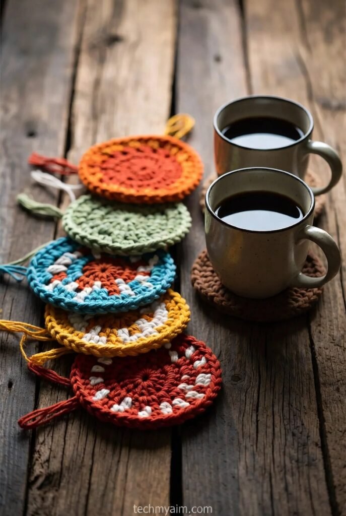 Crochet coasters are one of the easiest and most useful scrap yarn projects. They protect tables and add color to your home.