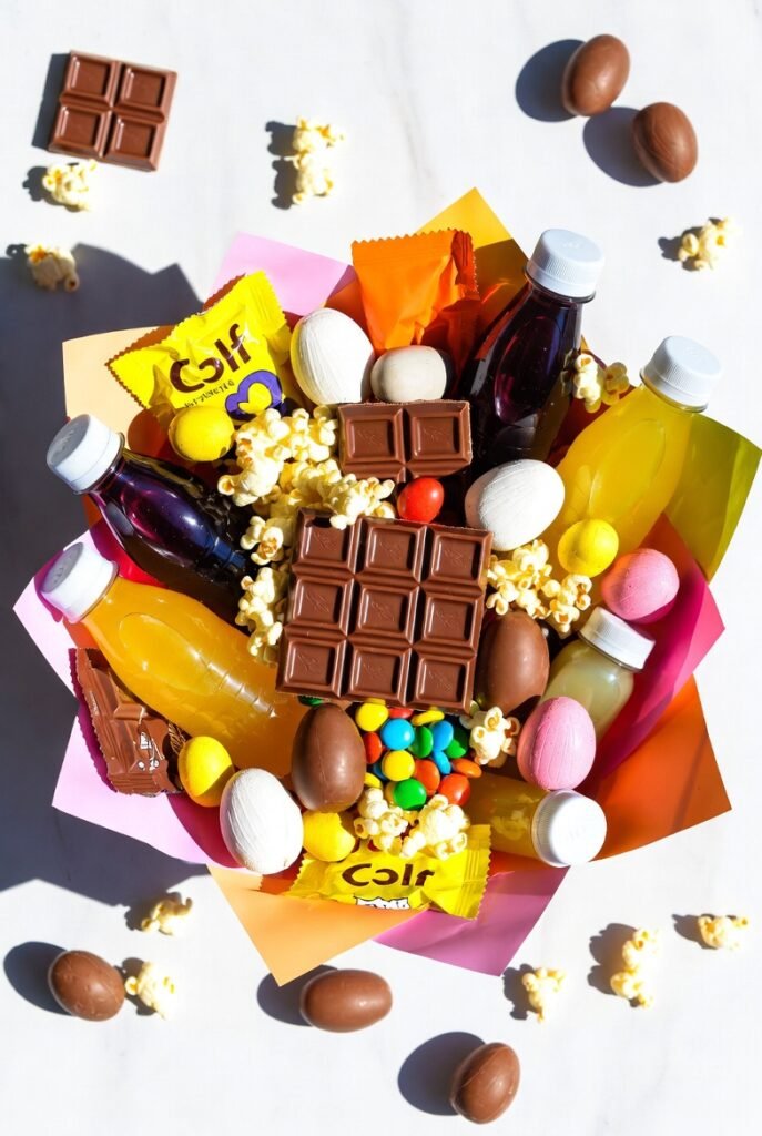 Skip the traditional candy overload and go for a mix of trendy snacks. Include international treats, protein bars, gourmet popcorn, chocolates, and their favorite drinks. Personalize it with items they already love.