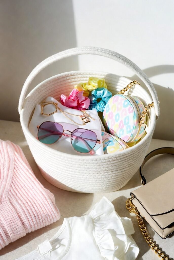 Create a mini style haul with trendy accessories. Sunglasses, jewelry, hats, scrunchies, mini bags, or even a gift card to their favorite clothing store can make this basket a hit.