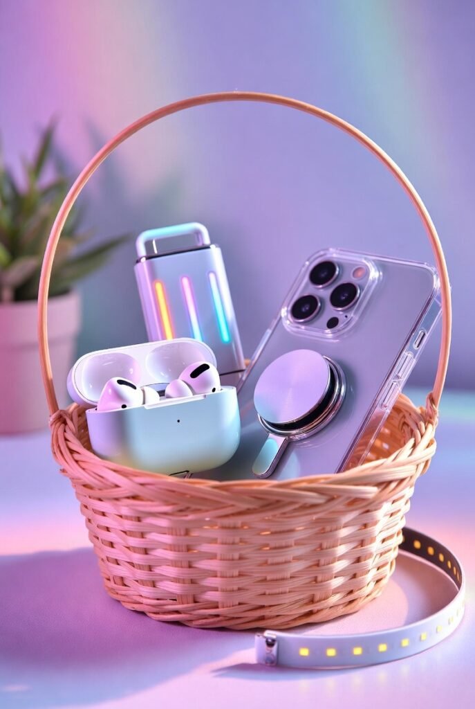 Teens love their tech, so why not build a basket around it? Add items like wireless earbuds, phone stands, LED lights, portable chargers, or fun accessories like pop sockets and phone cases.