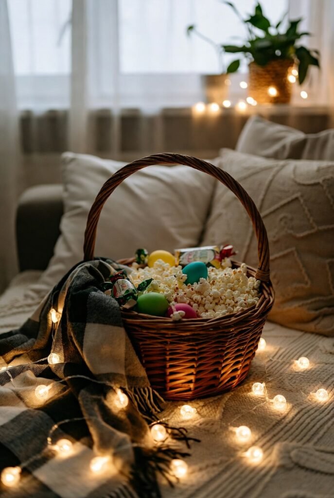 Turn Easter into a cozy night in. Include popcorn, candy, fuzzy blankets, and maybe a subscription gift card for a streaming service. Add a handwritten note suggesting a movie marathon.