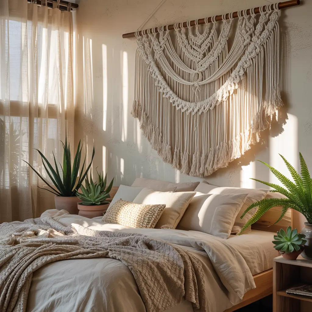 Macrame is having its moment, and honestly, it’s about time. This textile art adds warmth, texture, and that handmade charm that makes bedrooms feel less like hotels and more like homes.