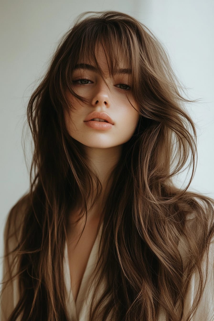 Project an ethereal aura with a radiant, glowing makeup style that uplifts your natural features. Start with a luminous primer followed by a light foundation to allow your skin to shine through. Highlight the high points of the face, and use soft lavender or pink eyeshadows to create a dreamy effect on the eyelids. Finish off with a soft, glossy lip in a peach or baby pink shade to enhance the gentle vibe.